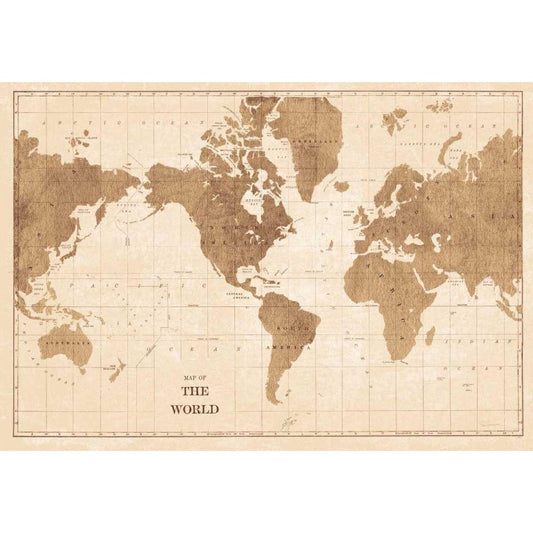 World Map Sepia No Words Black Modern Wood Framed Art Print with Double Matting by Schlabach, Sue