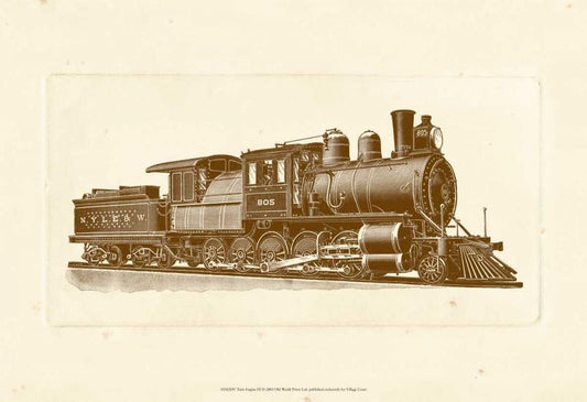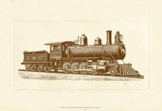 Train Engine I White Modern Wood Framed Art Print with Double Matting by Unknown