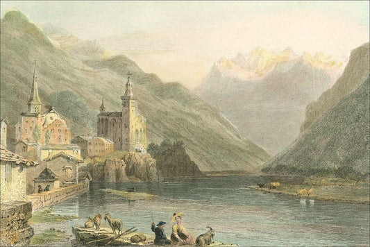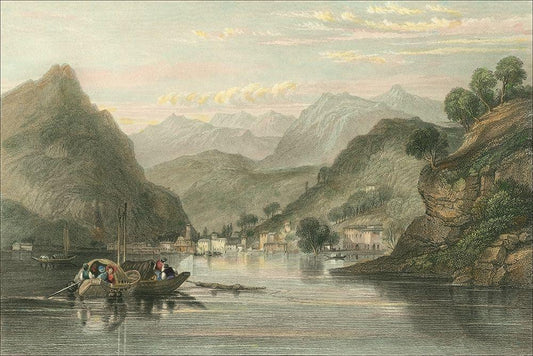 Pastoral Riverscape I White Modern Wood Framed Art Print with Double Matting by Bartlett, William H.
