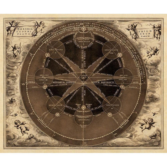 Sepia Planetary Chart Gold Ornate Wood Framed Art Print with Double Matting by Vision Studio