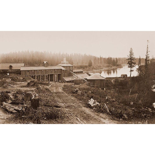 Oswego Iron Works, Willamette River, Oregon, 1867 Black Modern Wood Framed Art Print by Watkins, Carleton