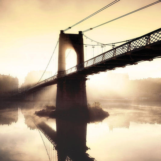 Footbridge in the Setting Sun Black Modern Wood Framed Art Print by Frederic, P.