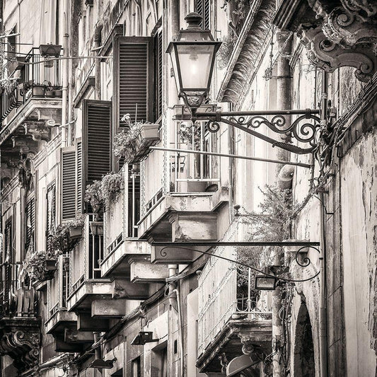 Mediterranean Street Scene Black Modern Wood Framed Art Print by Molcan, M.