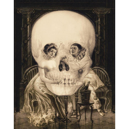 Pierrots Love Black Modern Wood Framed Art Print by Anonymous