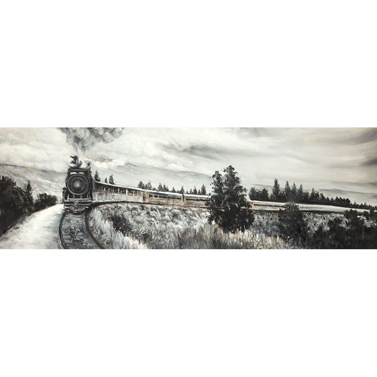 Vintage Locomotive Passenger Black Modern Wood Framed Art Print by Atelier B Art Studio