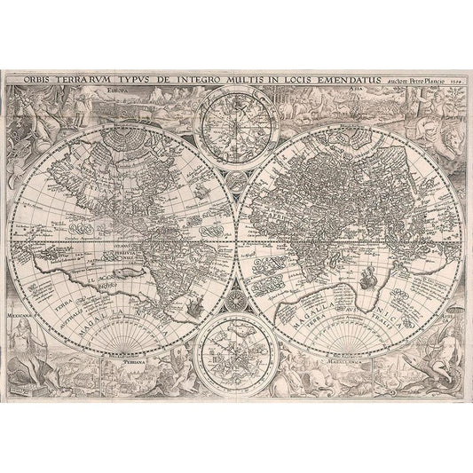World Map 1594 Black Modern Wood Framed Art Print by Plancio, Petro