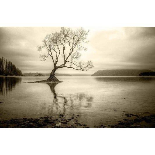 Lone Tree in a Lake Black Modern Wood Framed Art Print by Rushton, Ian