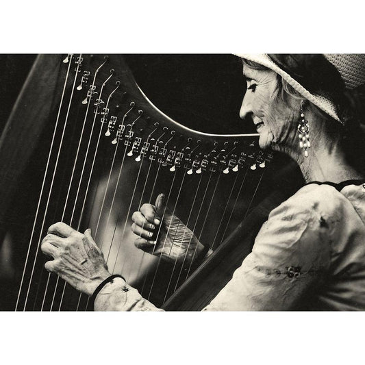 Playing The Harp Black Modern Wood Framed Art Print by Ariel, Ariel