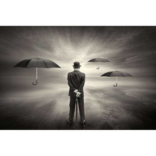 El Seapor De Los Paraguas Black Modern Wood Framed Art Print by Antonio Trivino, Jose