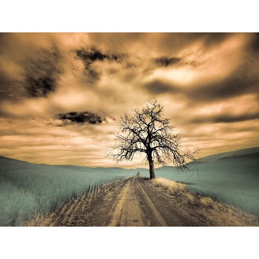USA-Washington State-Palouse Infrared of lone tree along side country road Black Modern Wood Framed Art Print by Eggers, Terry