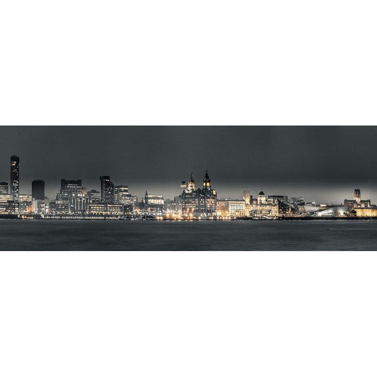 Liverpool skyline across the River Mersey, UK Black Modern Wood Framed Art Print by Frank, Assaf