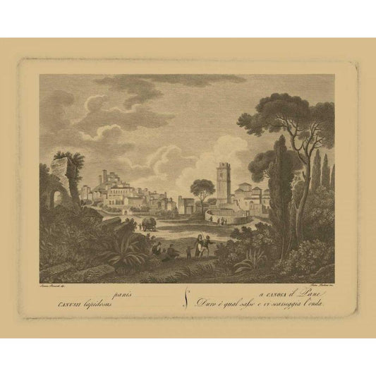 Pastoral Etching I Black Modern Wood Framed Art Print by Unknown
