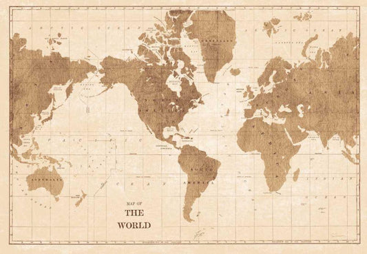 World Map Sepia White Modern Wood Framed Art Print with Double Matting by Schlabach, Sue