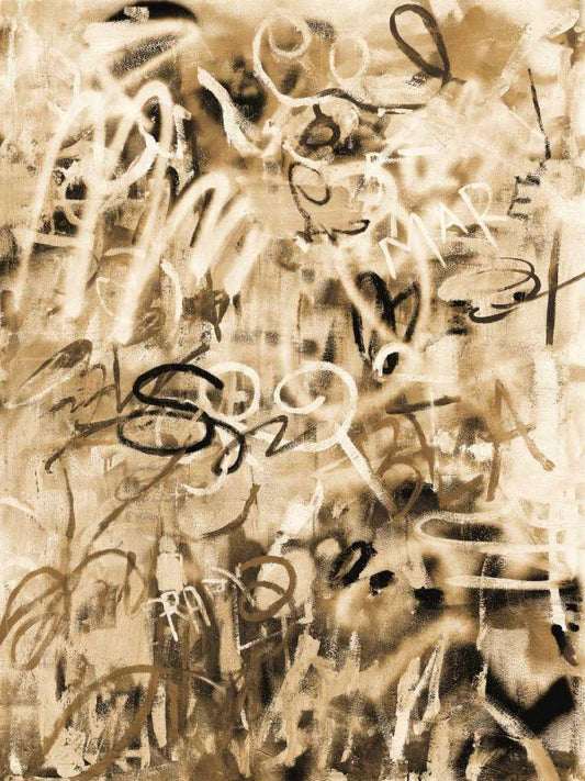 Graffiti Love Sepia White Modern Wood Framed Art Print with Double Matting by Nai, Danhui