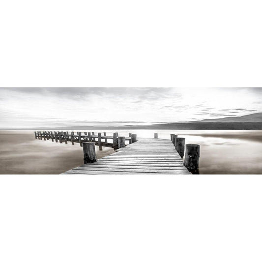 Misty Morning Dock Black Modern Wood Framed Art Print by Calascibetta, Mike