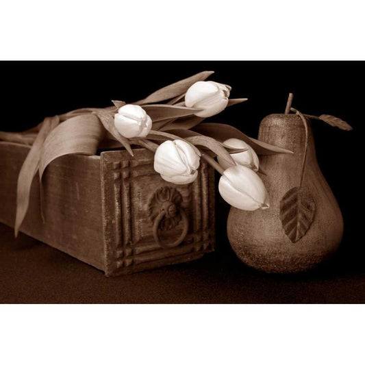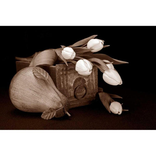Tulips With Pear I Black Modern Wood Framed Art Print by McNemar, C. Thomas