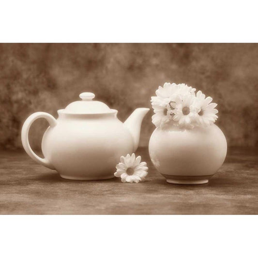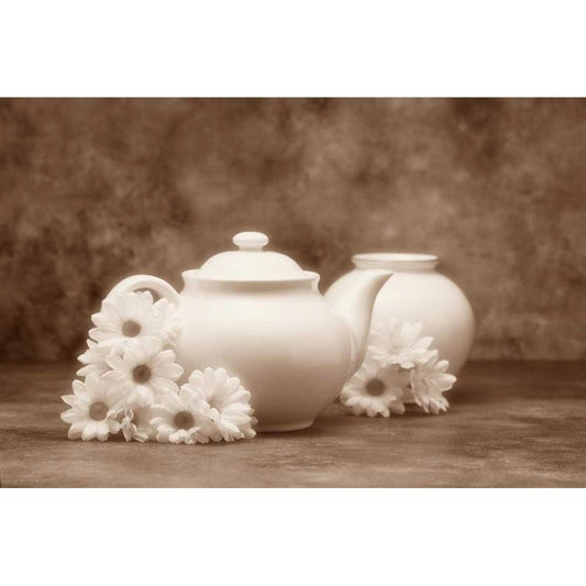 Teapot and Daisies I Black Modern Wood Framed Art Print by McNemar, C. Thomas