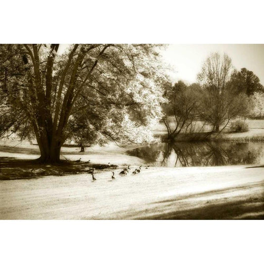 Geese at the Pond II Black Modern Wood Framed Art Print by Hausenflock, Alan