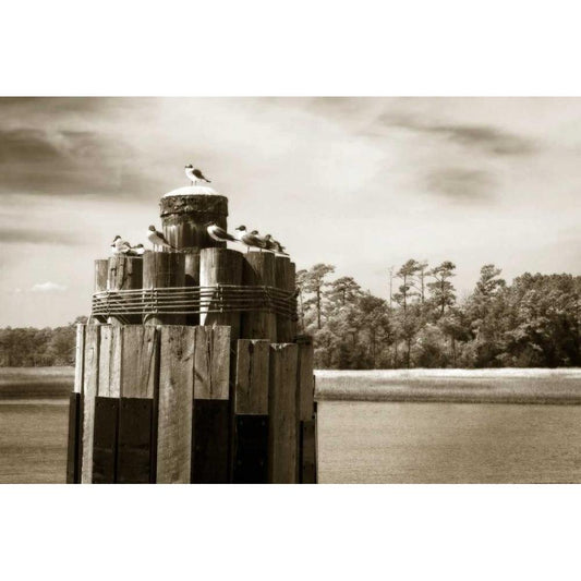 Pamlico Gulls I Black Modern Wood Framed Art Print by Hausenflock, Alan