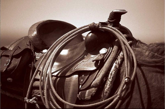 Saddling White Modern Wood Framed Art Print with Double Matting by OMara, James