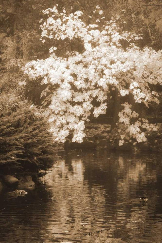 Sepia Lake White Modern Wood Framed Art Print with Double Matting by Foschino, Suzanne