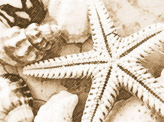Starfish and Seashells White Modern Wood Framed Art Print with Double Matting by Anonymous