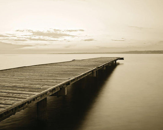Old Wooden Pier White Modern Wood Framed Art Print with Double Matting by Anonymous