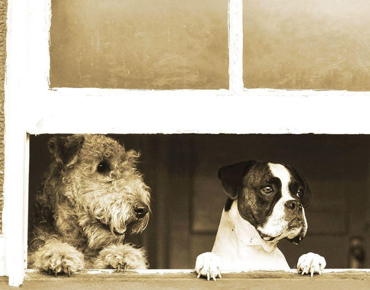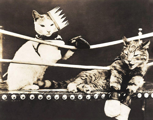 Catfight White Modern Wood Framed Art Print with Double Matting by Anonymous
