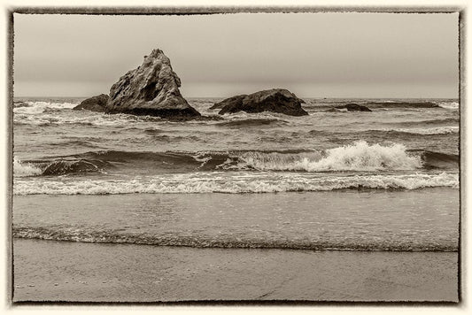 Crashing waves in the Pacific Ocean off northern California Black Ornate Wood Framed Art Print with Double Matting by SMO