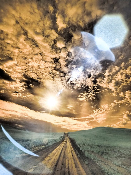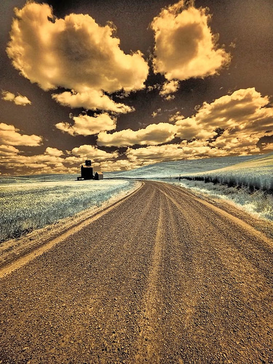 USA-Washington State-Palouse-Backcountry road through wheat field and clouds Black Ornate Wood Framed Art Print with Double Matting by Eggers, Terry