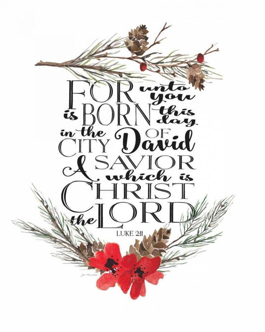 Unto Us Pine Bough White Modern Wood Framed Art Print with Double Matting by Moulton, Jo