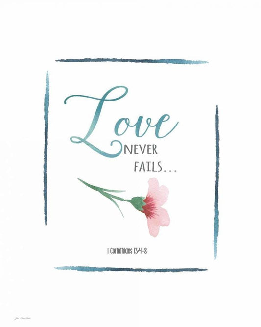 Love Never Fails White Modern Wood Framed Art Print with Double Matting by Moulton, Jo
