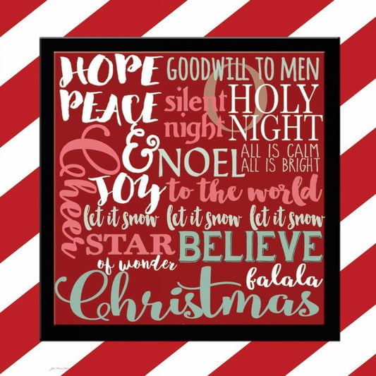 Candy Striped Christmas Subway White Modern Wood Framed Art Print with Double Matting by Moulton, Jo