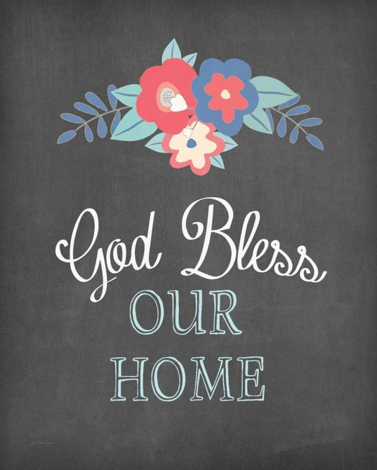 God Bless Our Home White Modern Wood Framed Art Print with Double Matting by Moulton, Jo