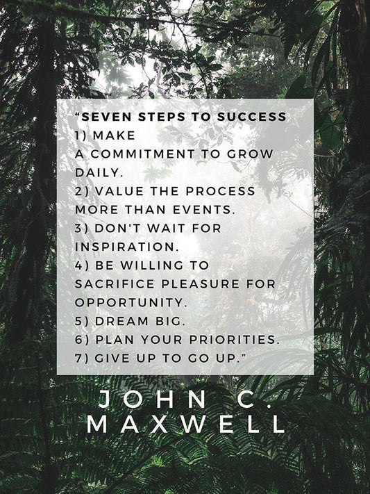 John C. Maxwell Quote: Seven Steps to Success White Modern Wood Framed Art Print with Double Matting by ArtsyQuotes