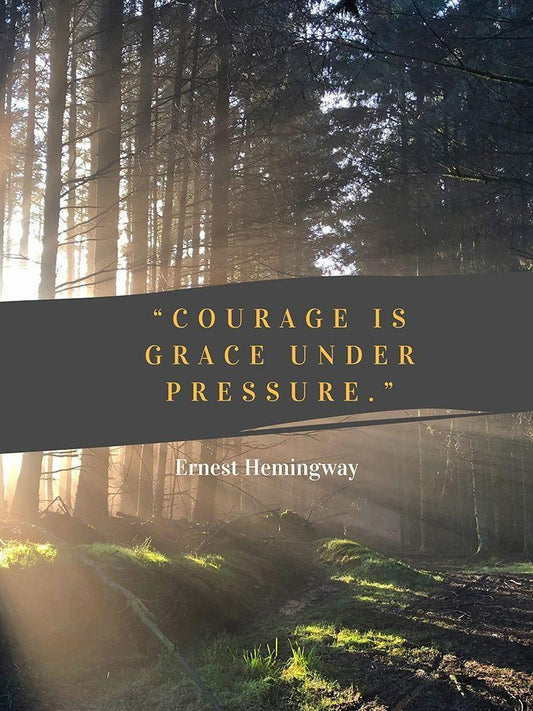 Ernest Hemingway Quote: Courage is Grace White Modern Wood Framed Art Print with Double Matting by ArtsyQuotes