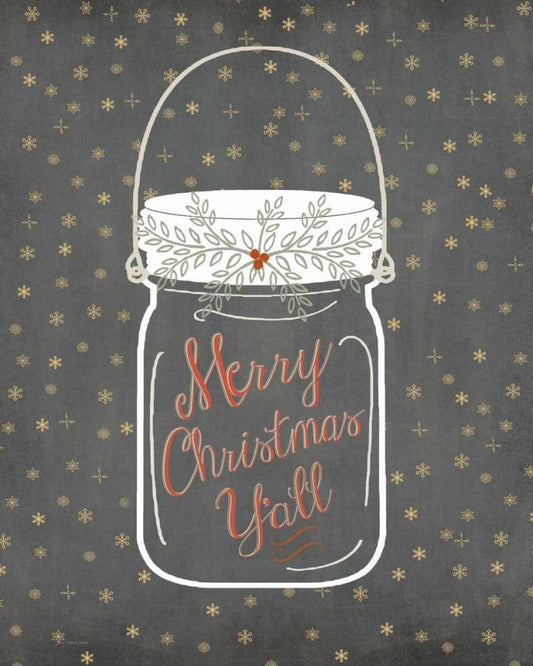 Merry Christmas Yall - Snowflake White Modern Wood Framed Art Print with Double Matting by Moulton, Jo