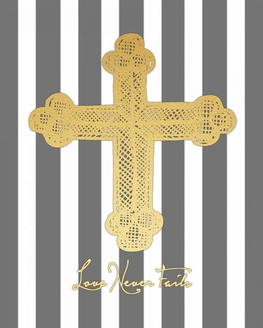 Gold Cross with Gray Stripes White Modern Wood Framed Art Print with Double Matting by Moulton, Jo
