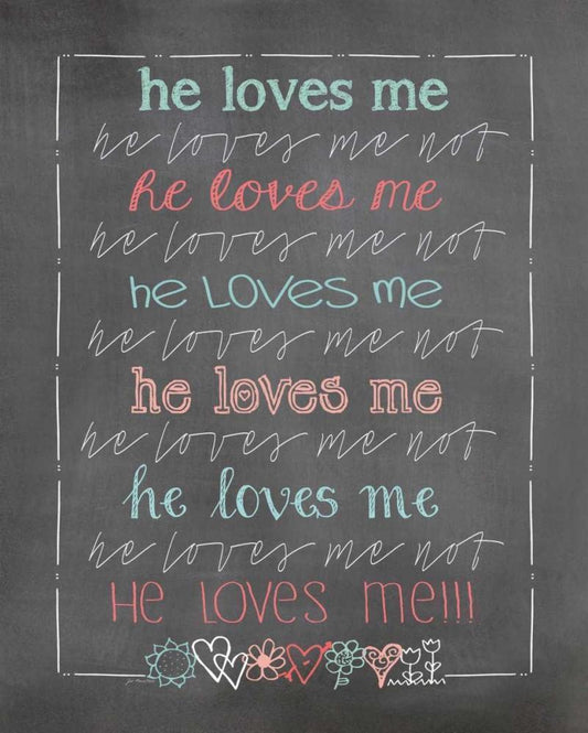 He Love Me!!! White Modern Wood Framed Art Print with Double Matting by Moulton, Jo