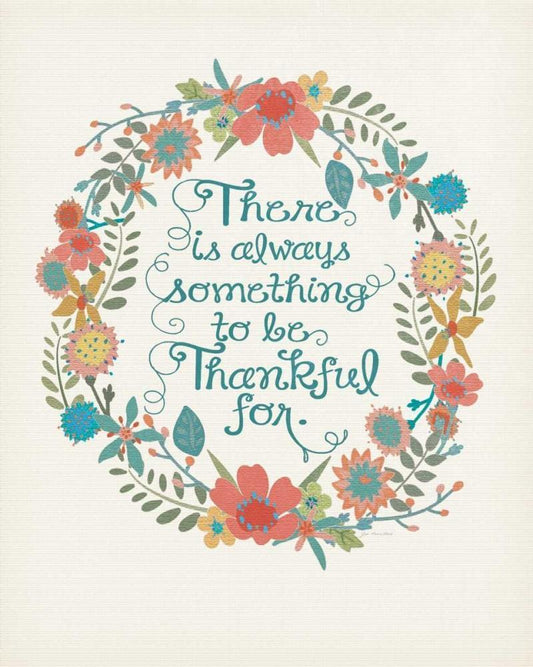 Floral Wreath - Thankful For White Modern Wood Framed Art Print with Double Matting by Moulton, Jo