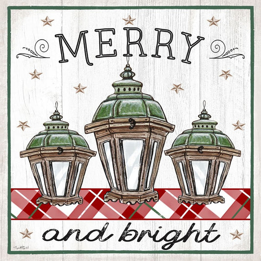 Merry and Bright Lanterns White Modern Wood Framed Art Print with Double Matting by Tyndall, Elizabeth