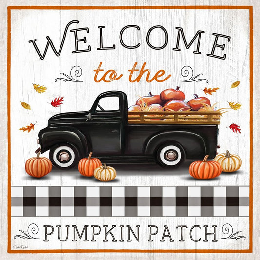Pumpkin Patch Welcome White Modern Wood Framed Art Print with Double Matting by Tyndall, Elizabeth