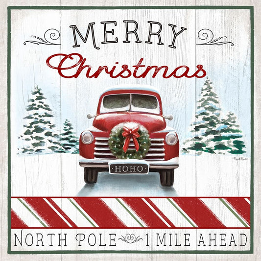 North Pole Christmas Truck White Modern Wood Framed Art Print with Double Matting by Tyndall, Elizabeth