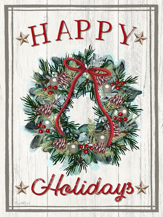 Holly Holidays Wreath White Modern Wood Framed Art Print with Double Matting by Tyndall, Elizabeth