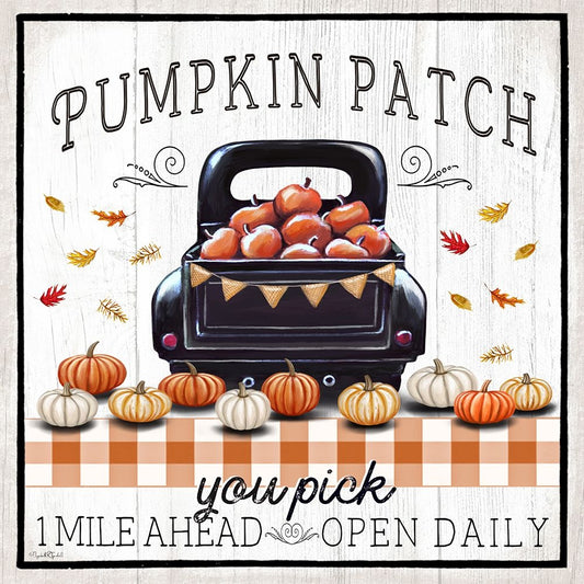 Pumpkin Patch Truck White Modern Wood Framed Art Print with Double Matting by Tyndall, Elizabeth