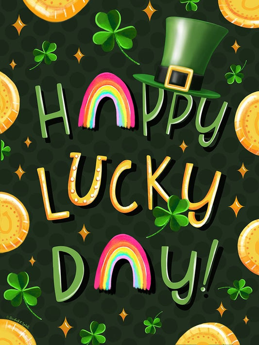 Happy Lucky Day White Modern Wood Framed Art Print with Double Matting by Tyndall, Elizabeth