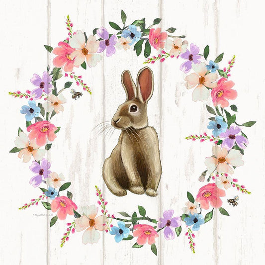 Bunny Wreath II White Modern Wood Framed Art Print with Double Matting by Tyndall, Elizabeth