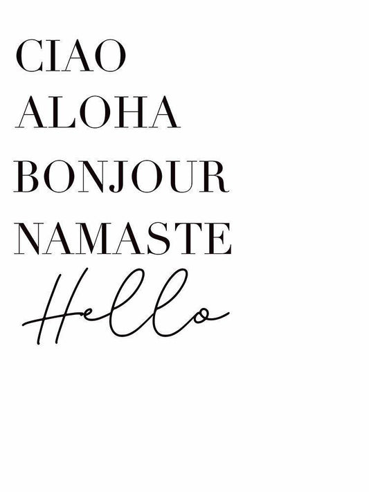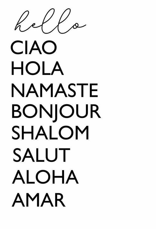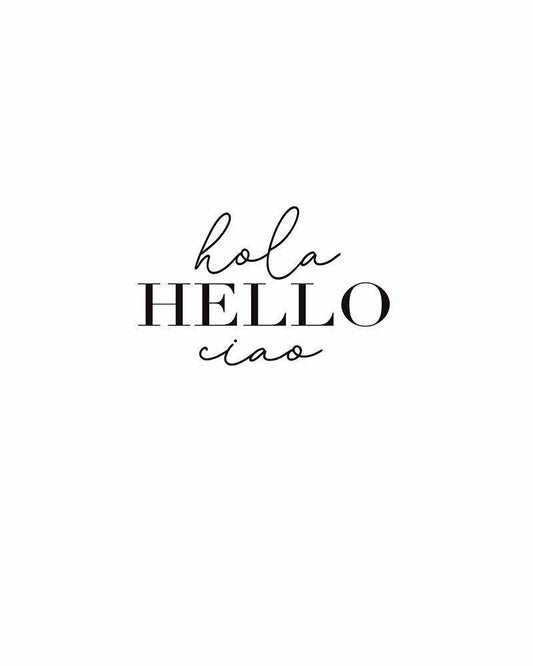 Hola, Hello, Ciao White Modern Wood Framed Art Print with Double Matting by Tyndall, Elizabeth