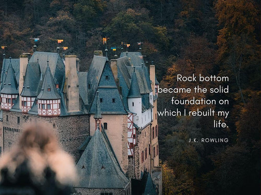 J.K. Rowling Quote: Rock Bottom White Modern Wood Framed Art Print with Double Matting by ArtsyQuotes