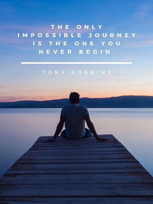 Tony Robbins Quote: Impossible Journey White Modern Wood Framed Art Print with Double Matting by ArtsyQuotes